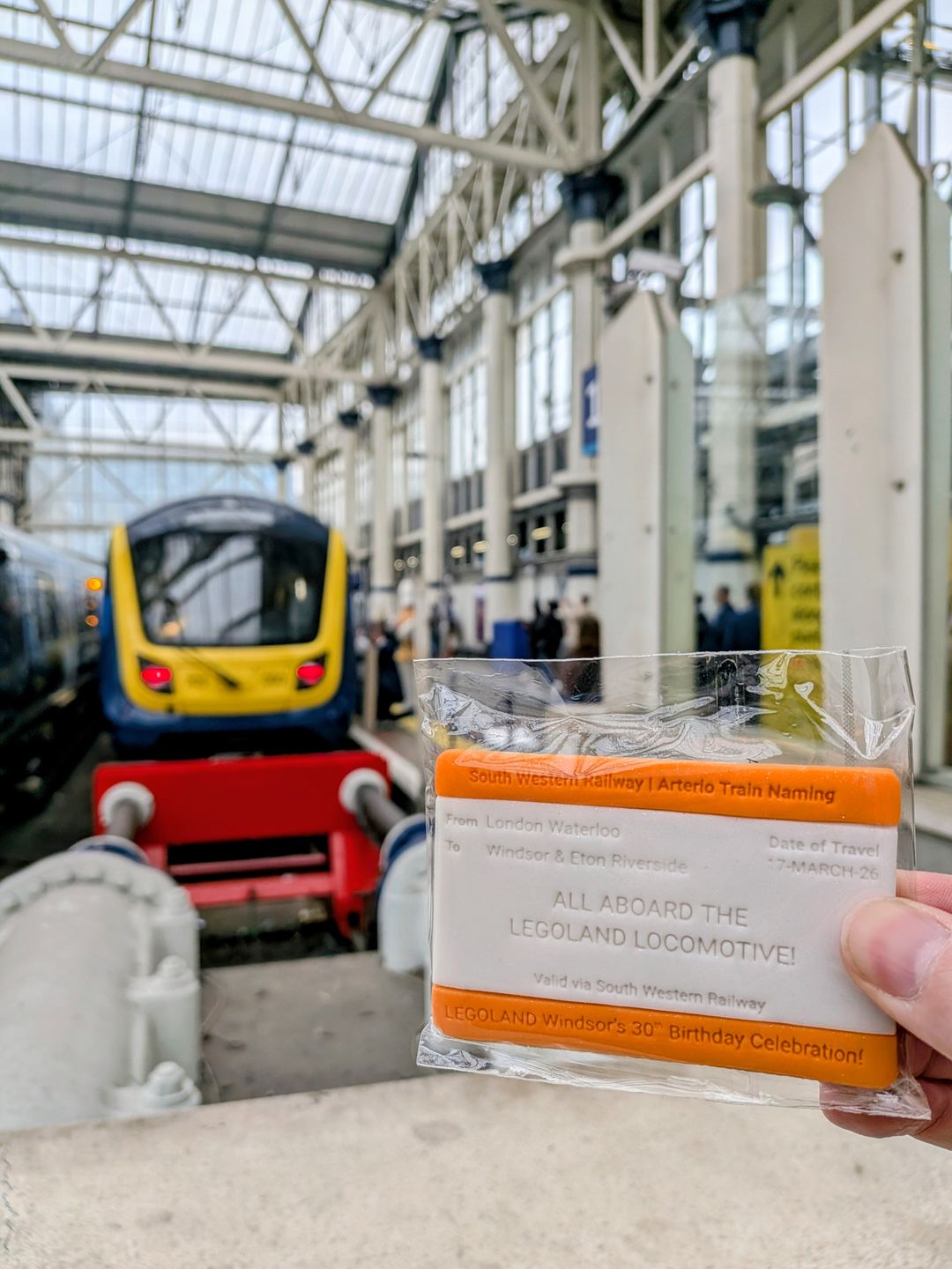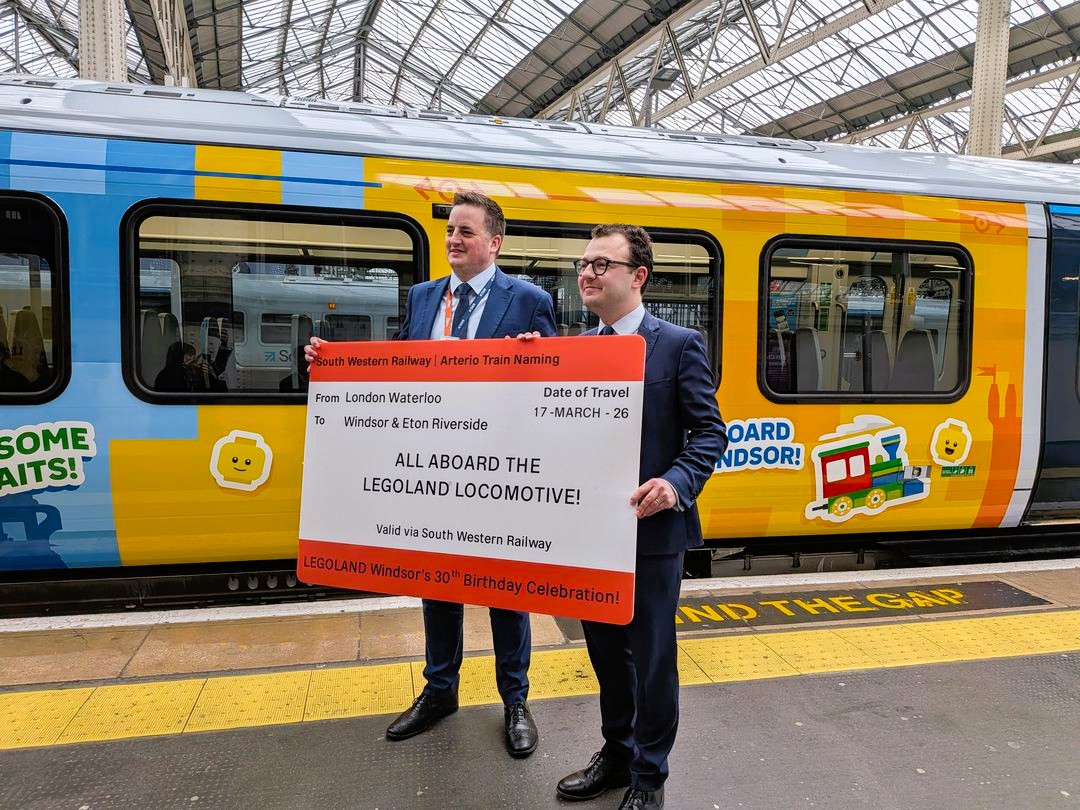 Yesterday, Tuesday 17th March, we were delighted to join Merlin Entertainments and South Western Railway (SWR) at London Waterloo Station for a very special unveiling. To celebrate the 30th anniversary of LEGOLAND Windsor Resort, which opened its doors exactly 30 years ago to the day on 17th March 1996, SWR has officially named one of its brand-new Arterio trains the LEGOLAND Locomotive.