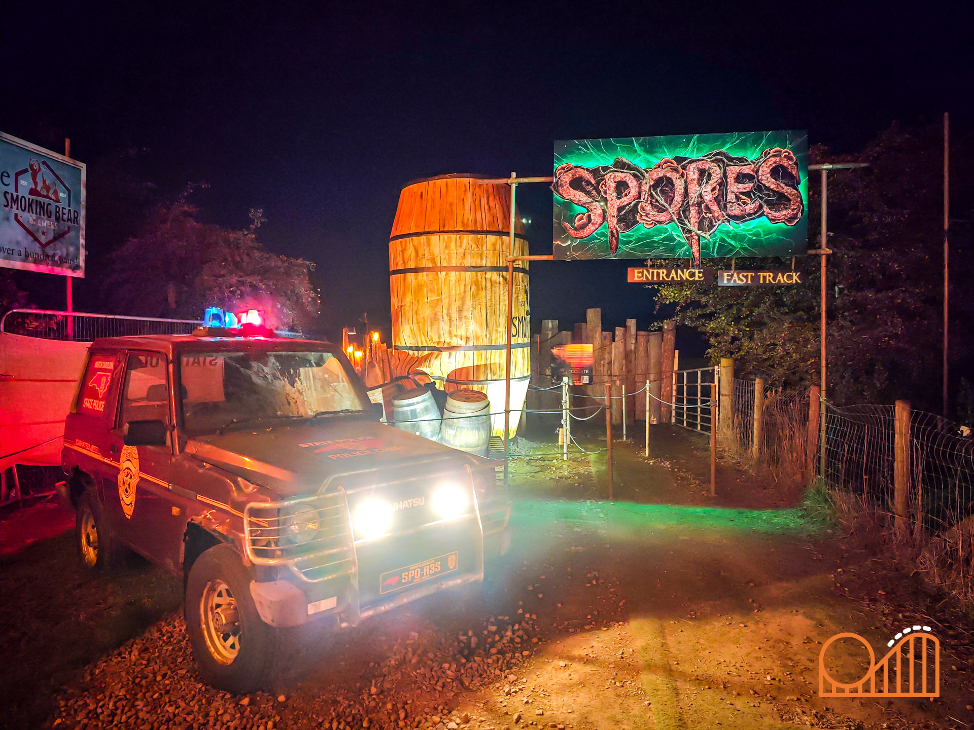 - Spores (New for 2025) – an almost cinematic, story-driven experience set in the shadowy folds of Madison County, deep in the Smoky Mountains. Brave guests enter the abandoned Smoking Bear Brewery, where a mysterious contamination has transformed the site into a pulsating, fungal nightmare. The attention to detail is superb. The actors are relentless. It’s a very impressive and memorable new addition that feels unlike anything else at the park.